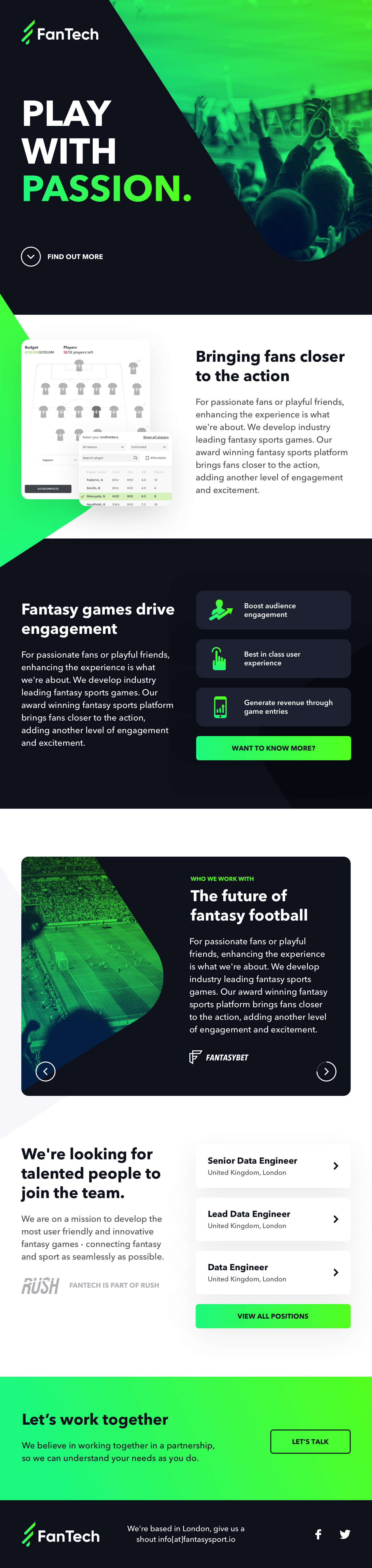 As a co-founder of FanTech we dreamed of one thing – to make sports better. Through innovative games and entertaining interactive products we sought to get fans more engaged in sports. The industry leading Fantasy sports platform offered a plug-and-play integration to media and gaming companies.